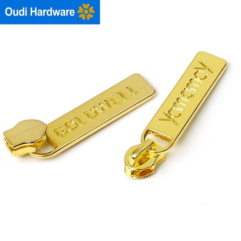 Gold Custom Shape Zipper Puller Logo #5 Nylon Reiß verschluss kopf Metall Dekorativer Reiß verschluss Abzieher für Tasche