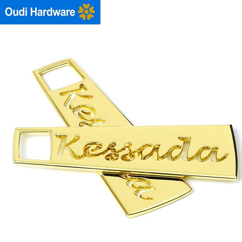 Hochwertige benutzer definierte Metall Logo Reiß verschluss Schieber Schnalle Gold Metall Logo Schieber egler für Handtaschen Kleidung