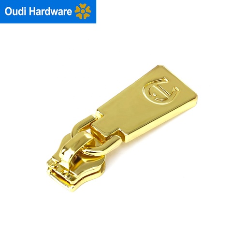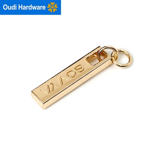 Mode Handtasche Zubehör Gravierte Reiß verschluss Slider Light Gold Logo Benutzer definierte Reiß verschluss Puller Design